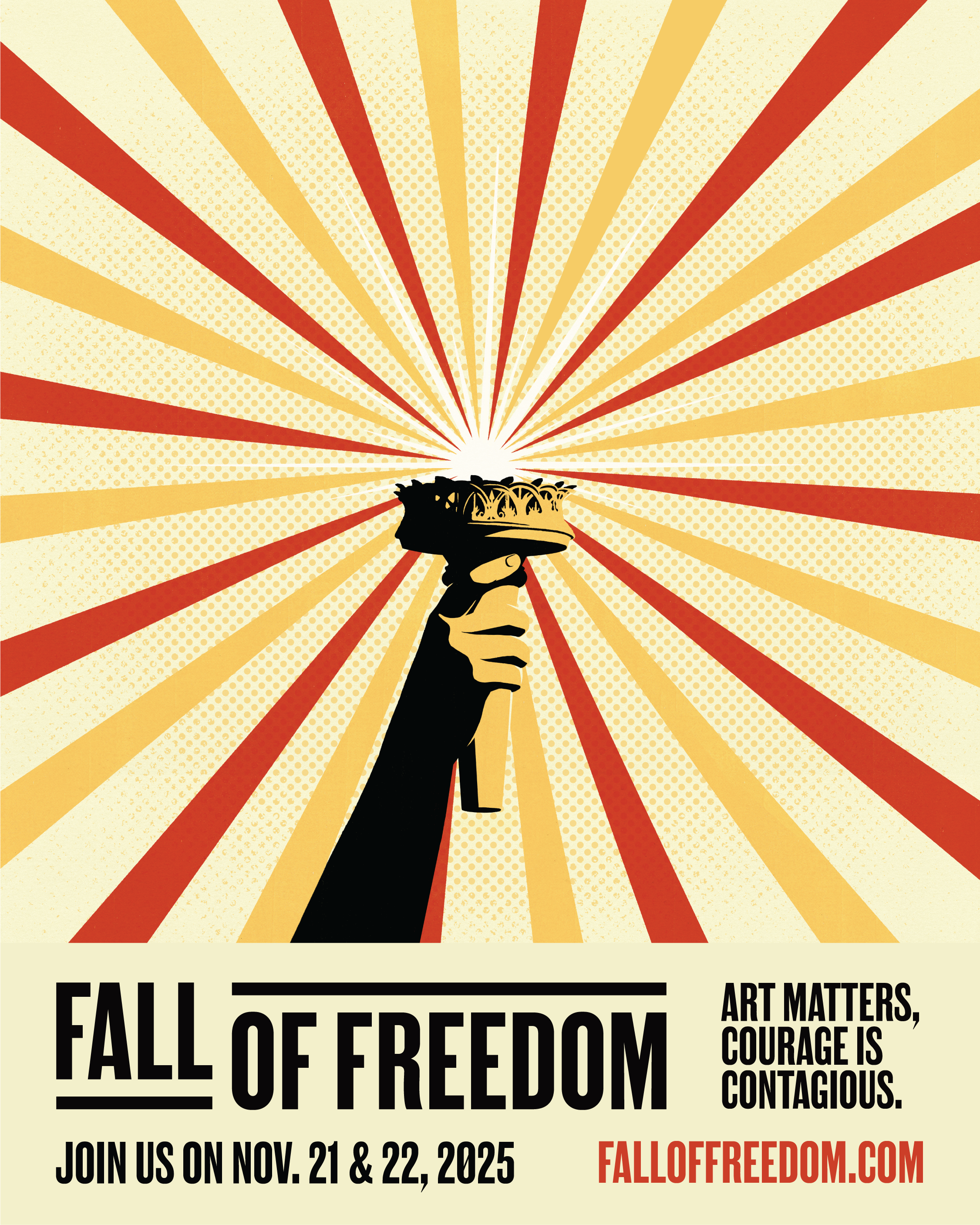 Fall of Freedom is an urgent call to the arts community to unite in defiance of authoritarian forces sweeping the nation. Our Democracy is under attack. Threats to free expression are rising. Dissent is being criminalized. Institutions and media have been recast as mouthpieces of propaganda.