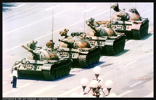 JW: Basically it's a lucky shot from being in the wrong place at the right time. I had been knocked silly the night before from a stray protestor brick that hit me in the face and the Nikon F3 Titanium camera absorbed the blow sparring my life. I was also suffering from a bad case of the flu during the whole Tiananmen story so I was pretty messed up. Our Asia photo editor had been in Beijing for weeks covering Mikhail Gorbachev's high level meetings with Chinese leaders and was anxious to return to Tokyo but unfortunately the night before the massacre. That left AP Beijing photo editor Mark Avery, New Delhi based AP photographer Liu Heung Shing and myself to cover one of the biggest stories of the 20th century. After sneaking into the Beijing Hotel with the help of an American college student named Kirk Martsen, I managed to get one fairly sharp frame of Tank Man from the 5th floor balcony of the Beijing Hotel with an 800mm focal length lens. I had run out of film and Martsen managed to find a single roll of 100 ASA from a tourist. The problem was it was 100 speed and I usually used 800. This meant that when I was eyeballing the light, I was three stops too low on the Nikon FE2 auto shutter speed. It was a miracle that the picture came out at all. It wasn't tack sharp but good enough to front almost every newspaper in the world the next day.